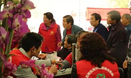 虽然外面下着大雨依然浇不灭义工队医护人员的服务热情,在整个活动过程中,医护人员都没有丝毫懈怠,不管男女老少,挨个进行检查,居民志愿参加的检测项目一个不差。医护人员向居民们嘘寒问暖,耐心的指导居民健康生活,提醒饮食习惯注意事项。同时,这些也受到了枫津社区的热烈欢迎。据悉,苏州东吴中西医结合医院的东吴医疗义工队将长期为枫津社区人提供免费义诊、健康服务工作。