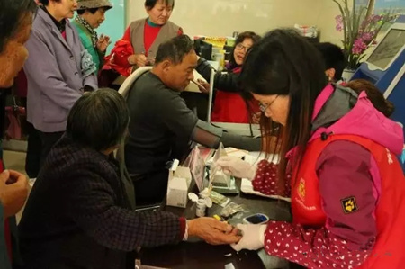 更有居民帮助义工队的人向其他居民解说检测的项目。