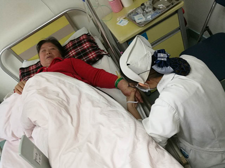 她告诉我们很多关于医生和护士对她无微不至照顾的细节。因为她的病情不宜外出,一天三餐饭都是护士从餐厅给她带回来的;她咳嗽喘不过来气,她的责任护士郑司桥不忙的时候就守在她的病床前给她拍背……