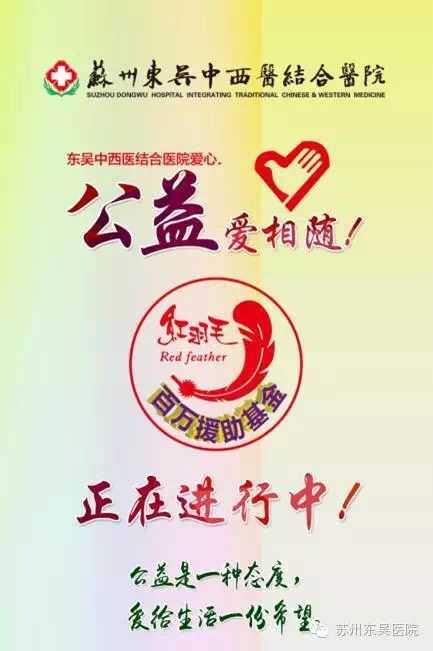 “红羽毛”爱心基金援助活动自启动以来,周边很多居民已经加入了红羽毛援助活动。很多患者因及时加入红羽毛而确诊病症,从而得到最佳治疗时间,增加了治愈机率。只要你满足红羽毛活动的条件,都可以申请东吴中西医结合医院红羽毛百万元专项援助基金活动,医院将对困难弱势群体提供住院诊疗援助活动。