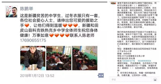 据悉,常美霞几天前在刷朋友圈的时候,看到了远在新疆支教的同学陈鹏举发出的一则捐赠动态。当时这则捐赠信息就牵动了常美霞的心,想着自己可以捐一些闲置的衣服给孩子们。